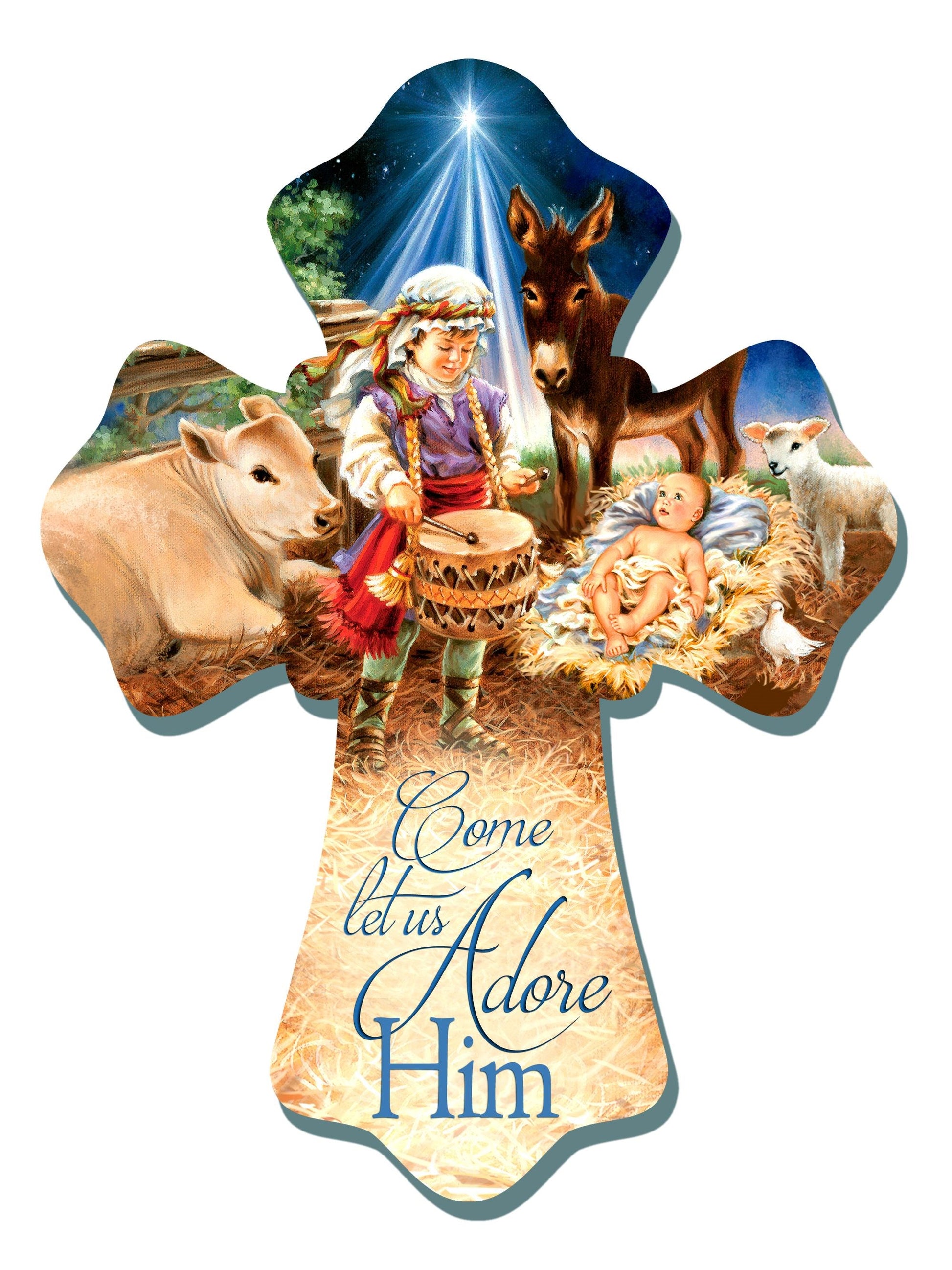 Wall Cross-Little Drummer Boy/Come Let Us Adore Him (6" x 8")