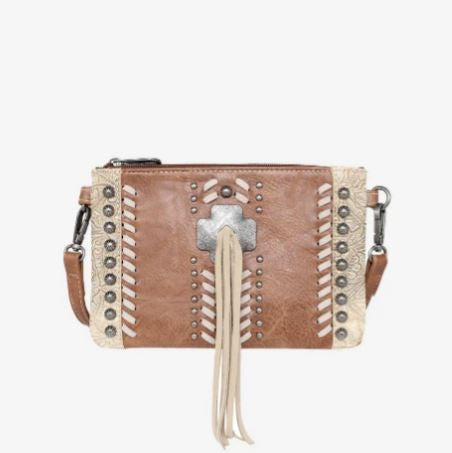 Clutch/Crossbody Bag-Cross With Tassel-Brown